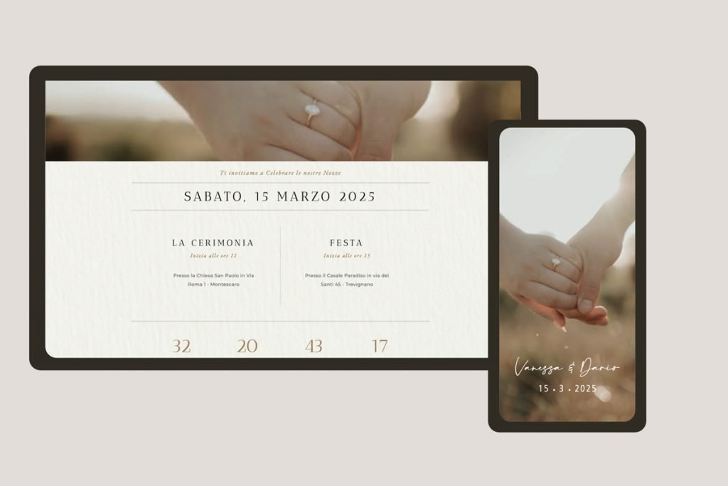 Do you want to engage your guests with more detailed information and help them arrive fully prepared for your “I do”? This service is perfect for you. With a wedding website, you can include all the details, practical information, travel tips, and your story, everything your guests need to know to be ready for your big day. You can choose to pair it with your printed invitation or create a fully digital invitation sent via email or WhatsApp.